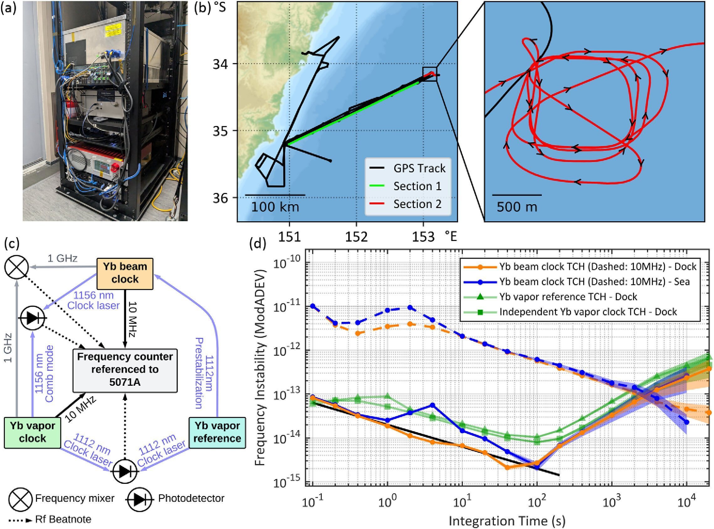 为验证性能,研究团队于2024年7月将该设备运至澳大利亚皇家海军提供的一艘舰船上,在海上连续运行数天。结果显示,在振动、晃动及温度变化等复杂海洋环境中,该原子钟仍保持与实验室测试一致的高性能。据介绍,这是激光冷却光学原子钟首次在海上实现运行验证。